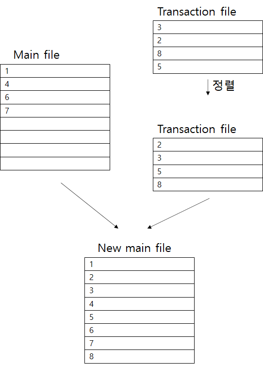이렇게 메인 파일과 트랜잭션 파일이 존재한다면 주기적으로 이 두 파일을 합쳐야 한다.