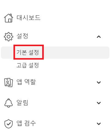 이제 좌측 메뉴의 기본 설정으로 들어간다.