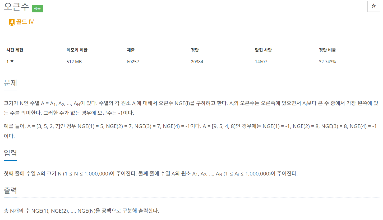 우선 문제를 봤을 때 가장 먼저 생각나는 알고리즘은 수열의 모든 값을 조사하는데 각각의 수열마다 자신 다음 값부터 끝까지 자신보다 큰 값이 나올 때까지 찾는 방법이다.