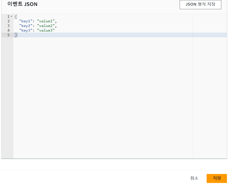 이제 새로운 이벤트를 생성하고 다음과 같은 JSON을 작성한다.