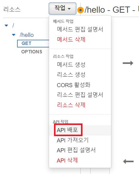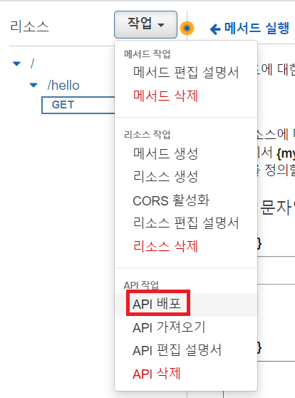 이제 API 배포를 클릭한다.