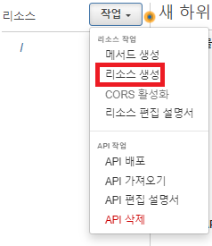 리소스 생성을 누른다.