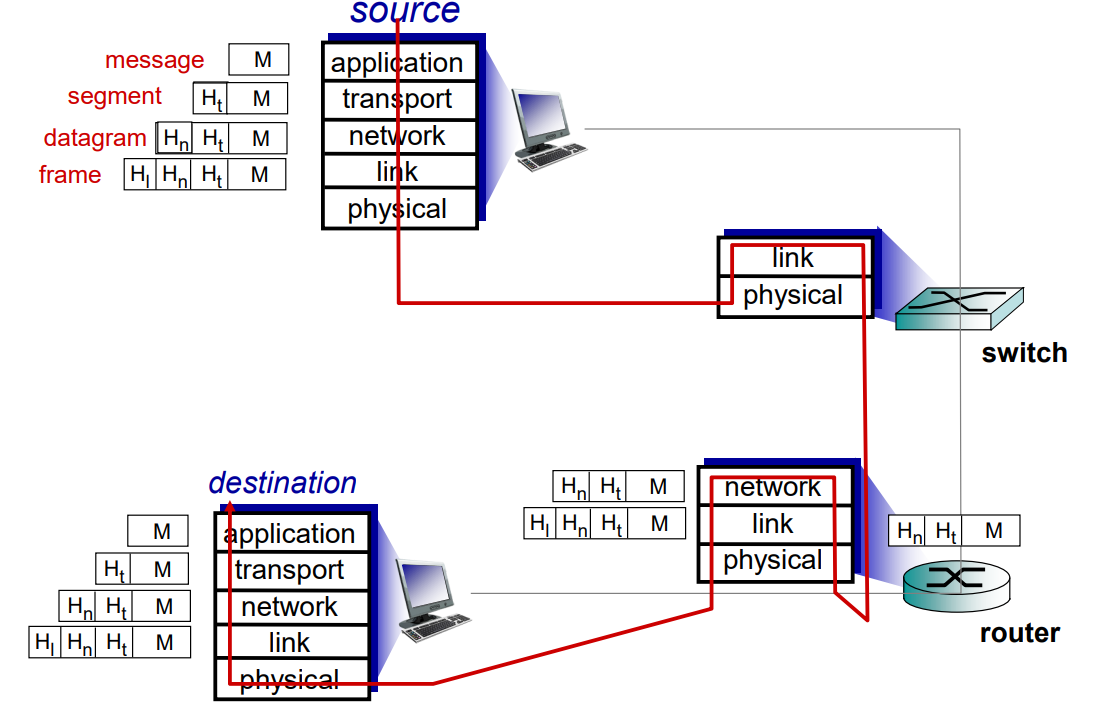 만약 원하는 목적지에 도착하게 되면 목적지에서 필요한 데이터는 메시지이기 때문에 physical 계층부터 Application 계층으로 올라가면서 역캡슐화를 진행한 다음 원하는 메시지를 얻게 될 것이다.