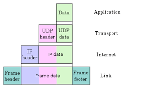 위 그림에서는 Transport 계층에서 UDP를 사용한 모습을 볼 수 있고 UDP header가 붙은 모습을 볼 수 있다.