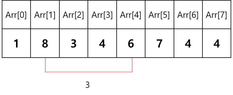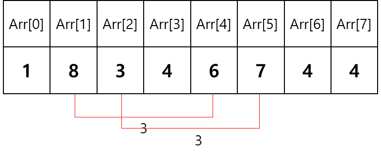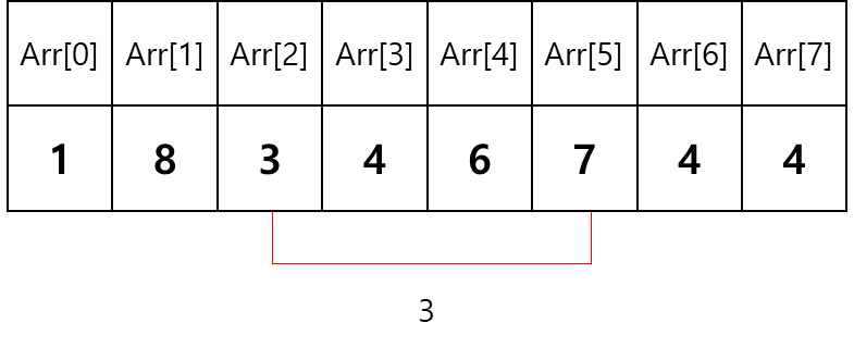 RMQ (1, 5)의 의미는 Arr[1] 부터 Arr[5] 까지의 값 중 가장 작은 값을 의미한다. 위 배열의 경우 "3"이 된다.