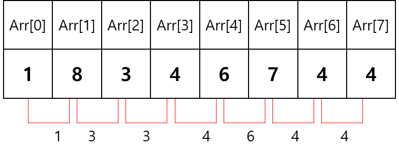 길이가 1이기 때문에 당연하게도 RMQ(i, i)의 값은 arr[ i ]의 값과 똑같을 것이다.