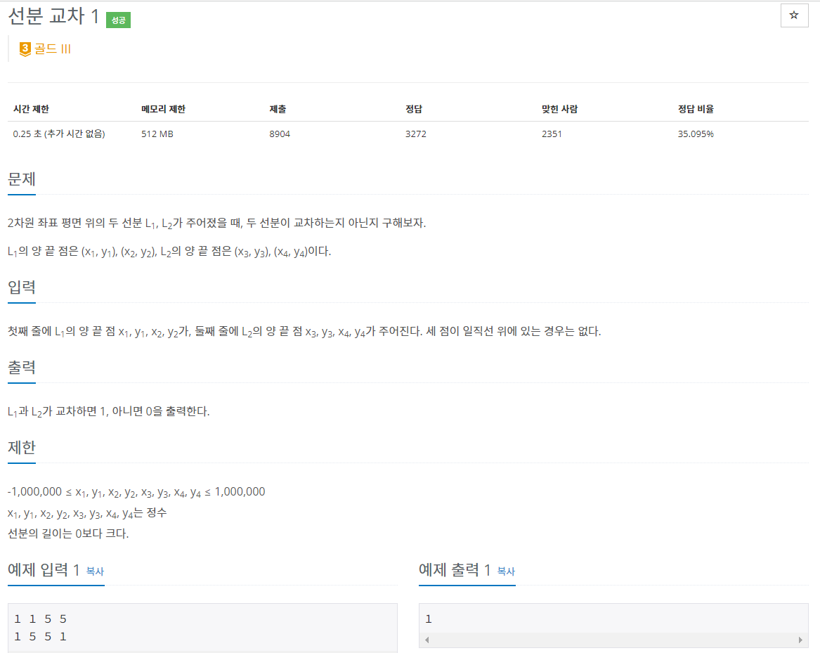 이전 포스팅에서 CCW 알고리즘을 활용하여 선분 교차하는 방법에 대해서 배웠다.