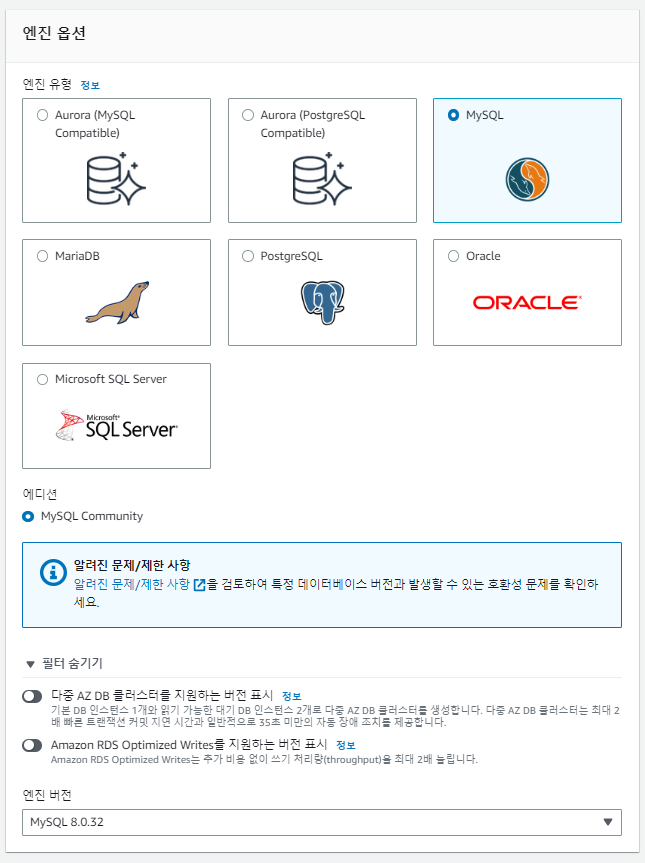 우리는 프리 티어를 선택했기 때문에 멀티 AZ를 사용할 수 없어서 가용 영역을 선택해야한다.
