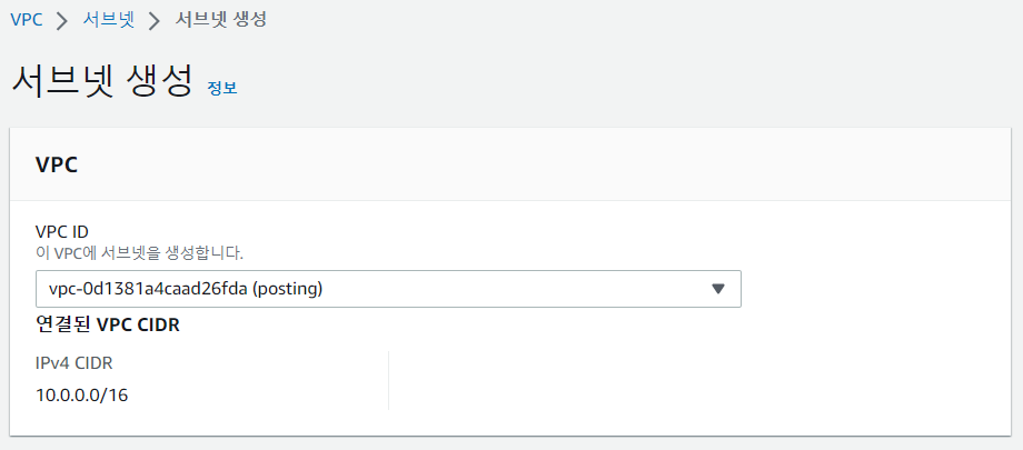 역시 이전 포스팅에서 만들었던 VPC를 선택한다.