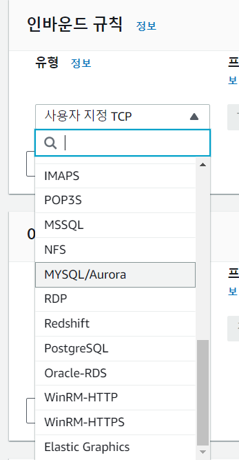 인바운드 규칙의 유형은 MYSQL/Aurora를 선택한다.