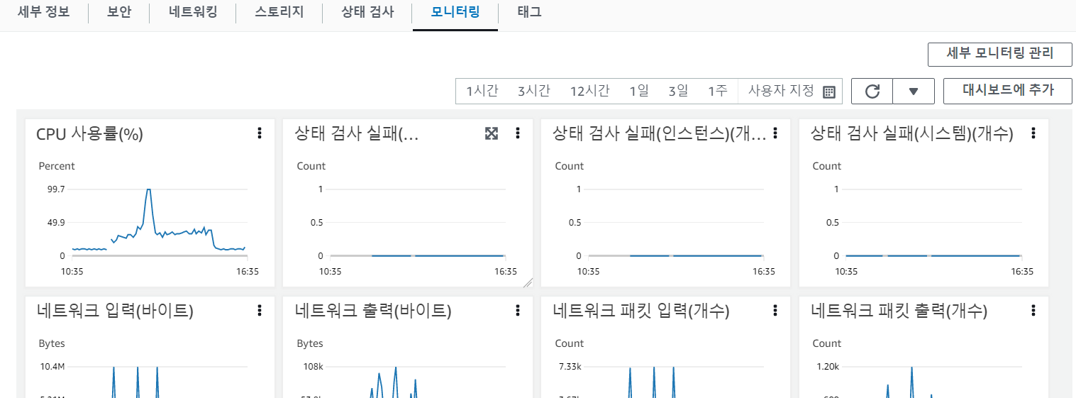 EC2 인스턴스의 모니터링 탭을 보면 이를 확인할 수 있다.