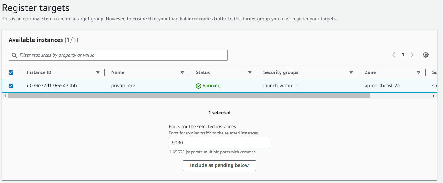 include as pending below를 클릭하여 추가하고 타겟 그룹을 생성한다.