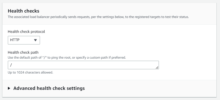 만약 경로라던가 응답 상태 코드를 변경하고 싶다면 Advanced health check settings를 눌러서 변경하면 된다.