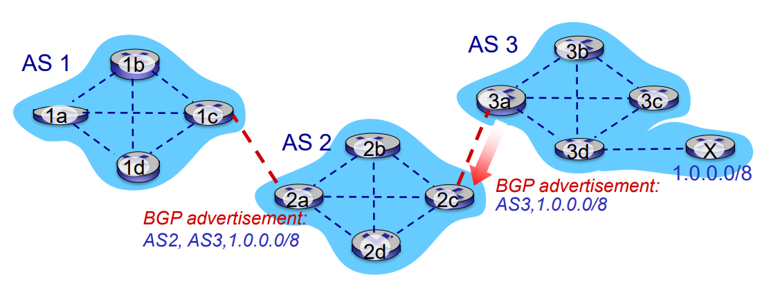 라우터 X가 존재하는 AS3의 gateway router가 X까지의 경로를 알고 있다.