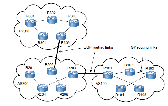 같은 AS 안이라면 반드시 같은 intra-domain protocol을 사용해야 하고. 서로 다른 AS 라면 반드시 다른 intra-domain protocol을 사용해야 한다.