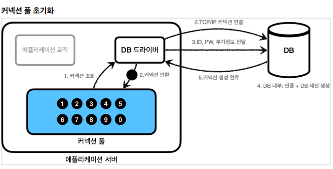참고로 커넥션 풀에 커넥션을 채우는 과정은 오래 걸리기 때문에 별도의 쓰레드를 생성해서 커넥션을 채운다.