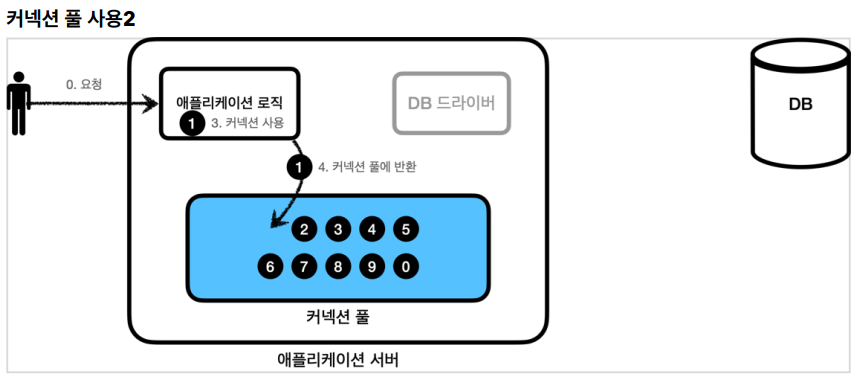 다 사용하고 나면 다시 커넥션을 커넥션 풀에 반납한다.