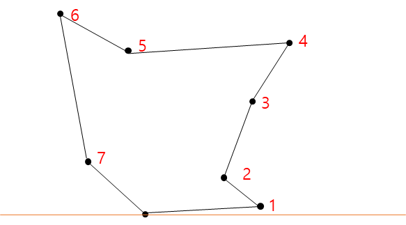 위와 같은 방식으로 모든 점을 지나는 다각형이 완성되었다.