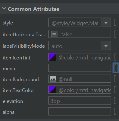 bottomNavigationView를 선택하고 common attributes에 보면 menu 버튼이 존재한다.