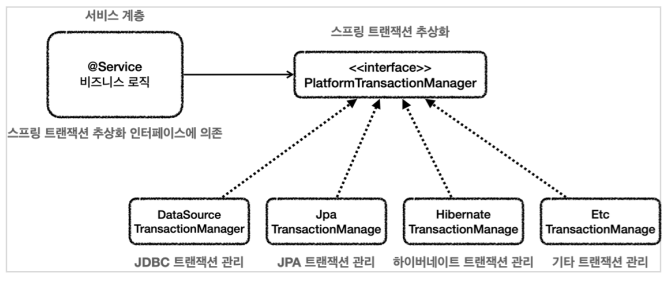 그래서 트랜잭션을 인터페이스로 추상화 한 다음 이 인터페이스를 의존하도록 변경해야한다.