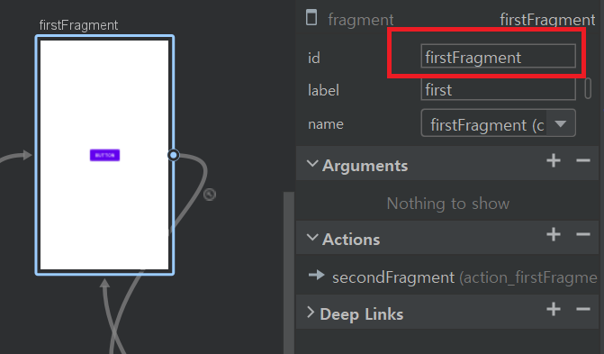 - id를 바꾼다. (바꿀 fragment의 아이디와 동일하게 바꾼다. 아래 사진 참조)