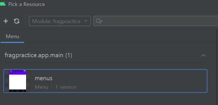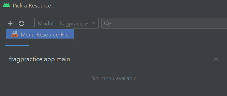 + 버튼의 menu resource file을 클릭하여 메뉴 버튼을 만든다.