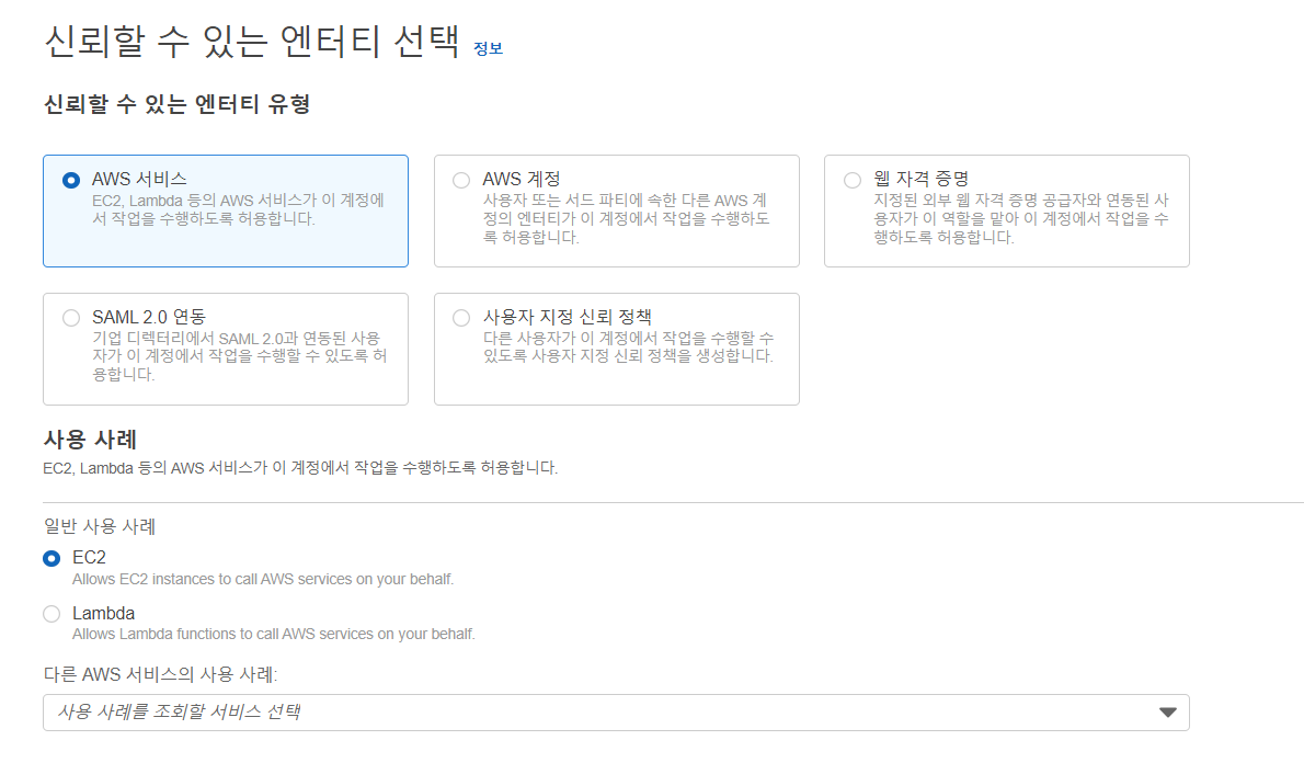 IAM -> 역할 -> 역할 만들기에 들어간다.