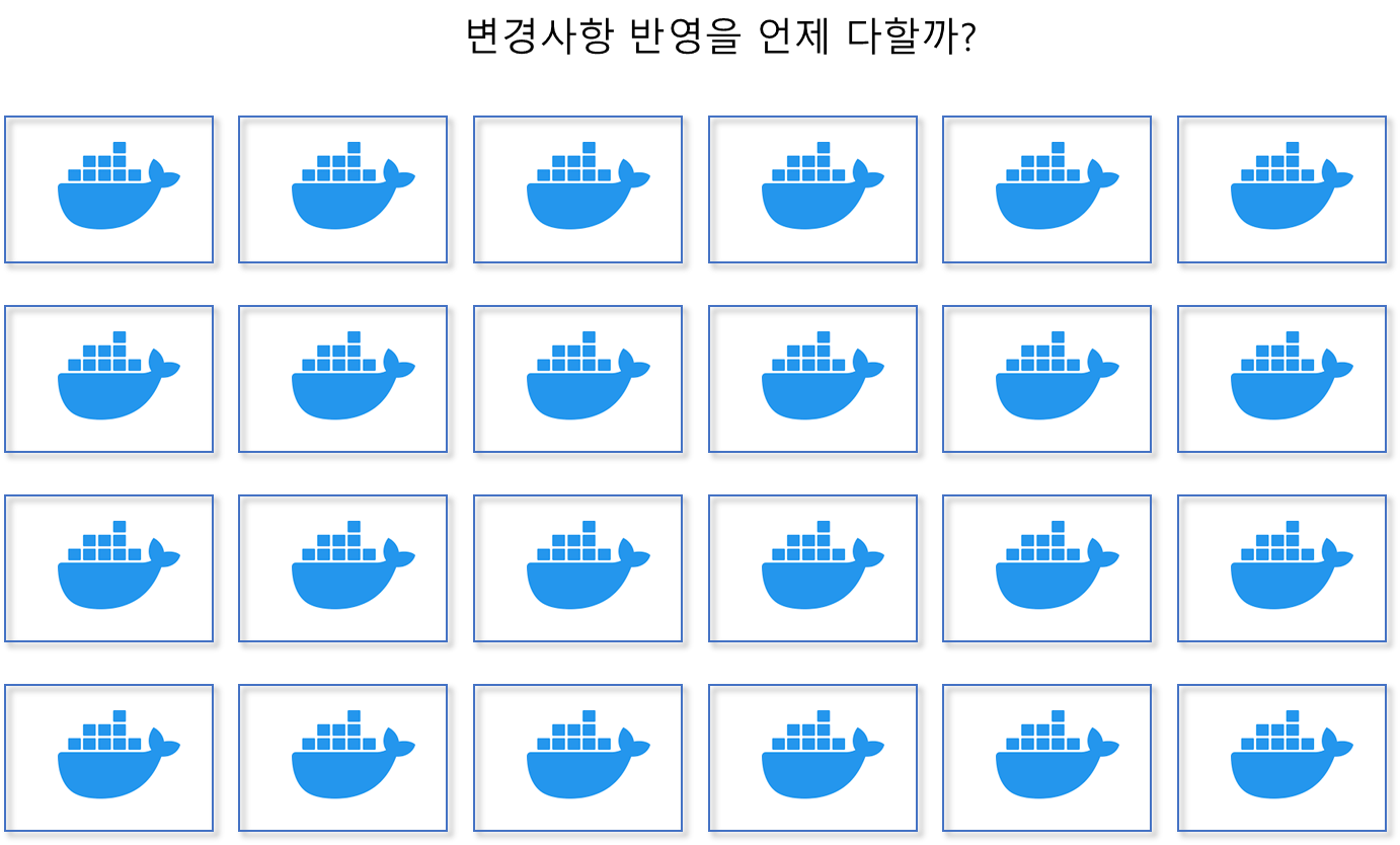 또한 애플리케이션에 기능이 추가되면서 여러 컨테이너를 업데이트 해야 한다면 얼마나 많은 시간이 걸릴까?