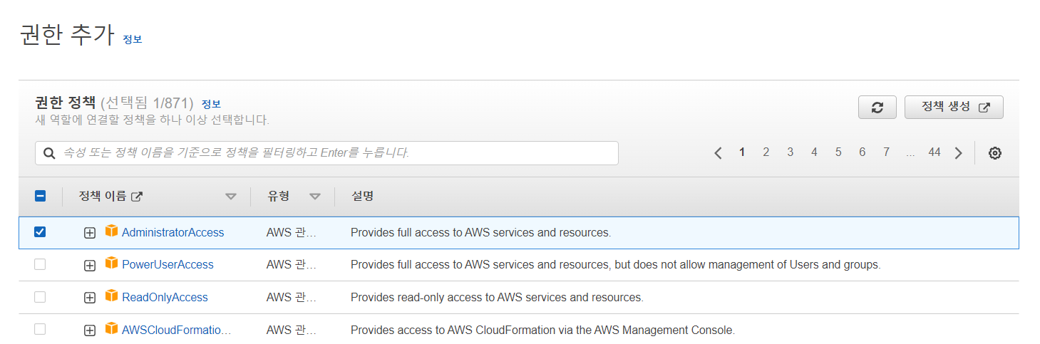 그리고 이 EC2 인스턴스에 관리자 권한 역할을 부여하자. (AdministratorAccess)