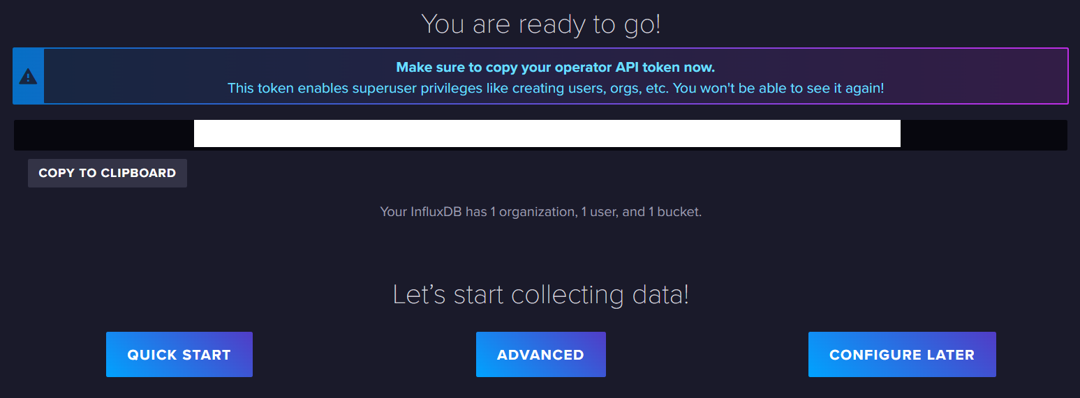 influxd.exe를 실행하고나서 localhost:8086으로 접속하면 influxDB 설정을 할 수 있다.