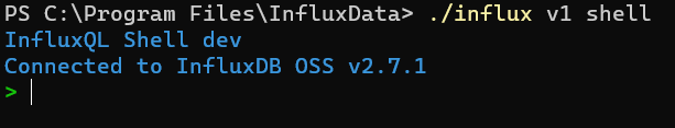 이제 influx.exe가 있는 경로로 이동을 해서 다음 명령어를 입력하면 influx CLI를 사용할 수 있다.
