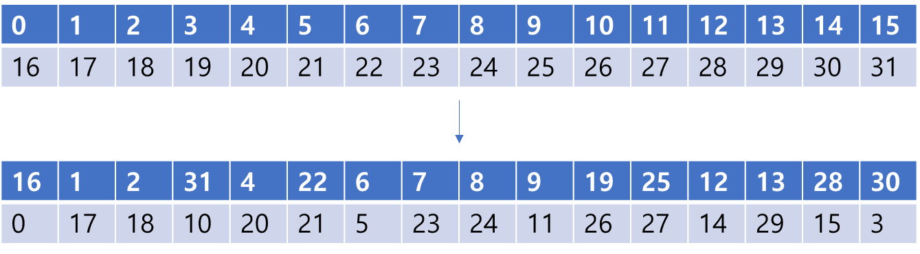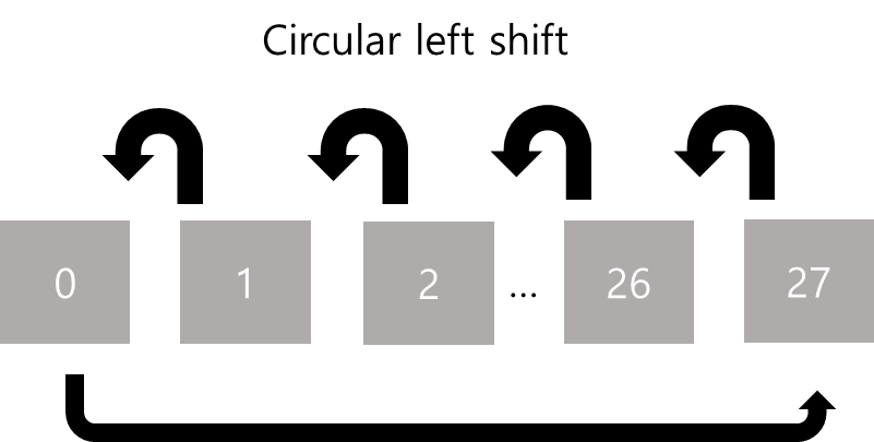 위 그림은 한 칸씩 이동하는 shift 연산인데 각 라운드마다 이동하는 정도는 다르게 한다.