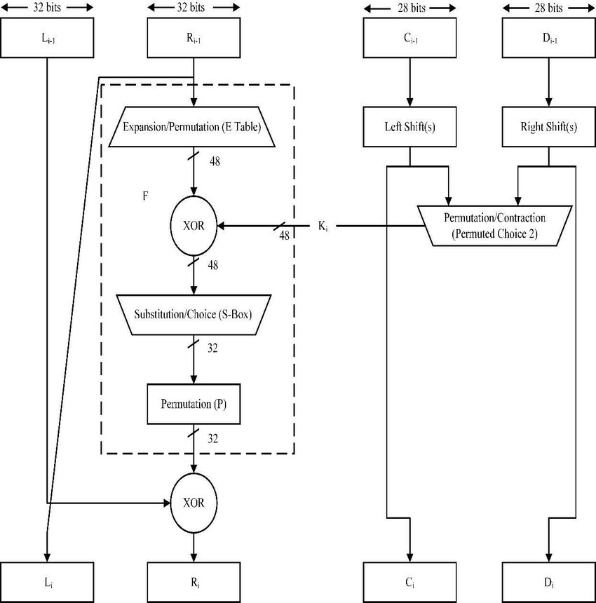 DES 역시 위와 같은 feistel cipher 구조를 따른다.