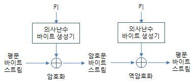스트림 암호는 난수를 1비트 단위로 생성하고 평문과 xor 연산을 해서 암호화를 진행한다.