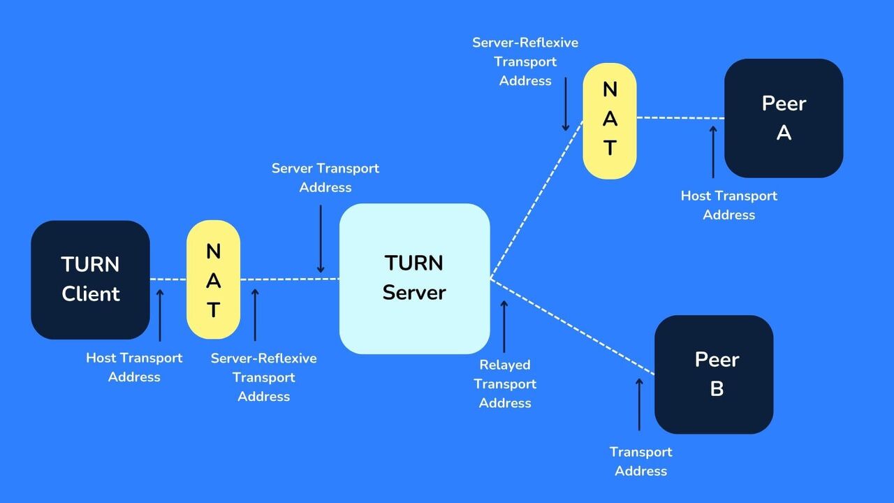 만약 A가 B에게 연결을 하려고 한다면 A가 TURN server에게 B에게 보내달라고 요청하고 TURN server는 모든 peer에 대해서 해당 요청을 보내는 것이다.