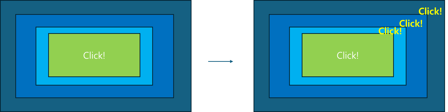 이렇게 자식 요소를 눌러도 그 위의 요소들까지 모두 영향을 주는 것을 이벤트 버블링 (Event Bubbling)이라고 한다.