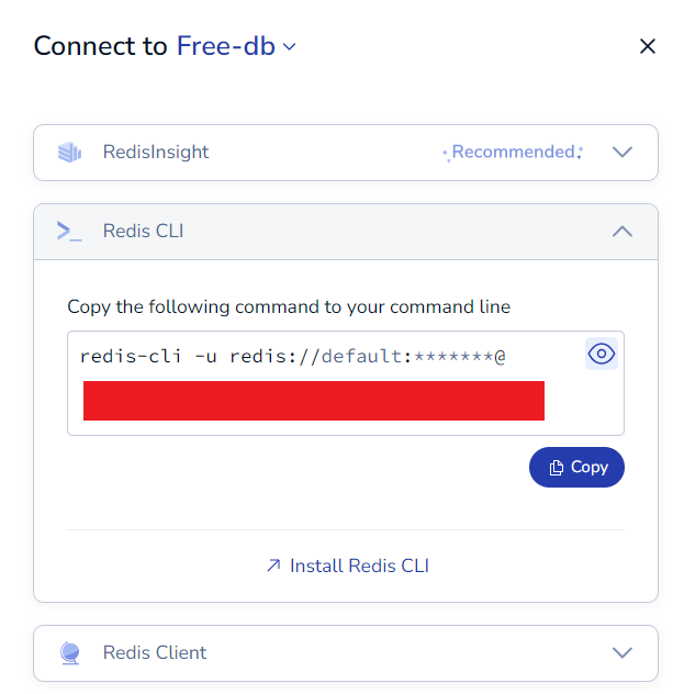 다양한 방법을 알려주는데 그 중 redis-cli를 선택하면 명령어가 나온다. 이 명령어를 붙여준다.
