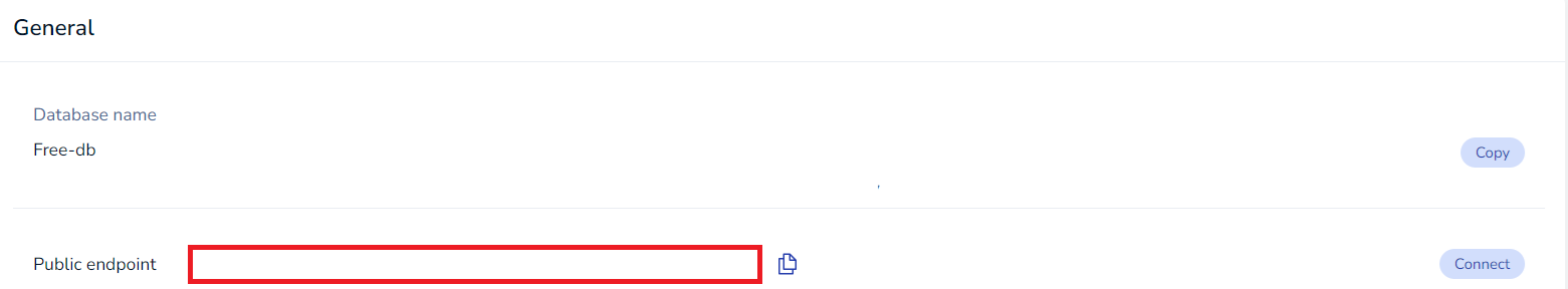 사용할 정보는 public endpoint와 password이다.