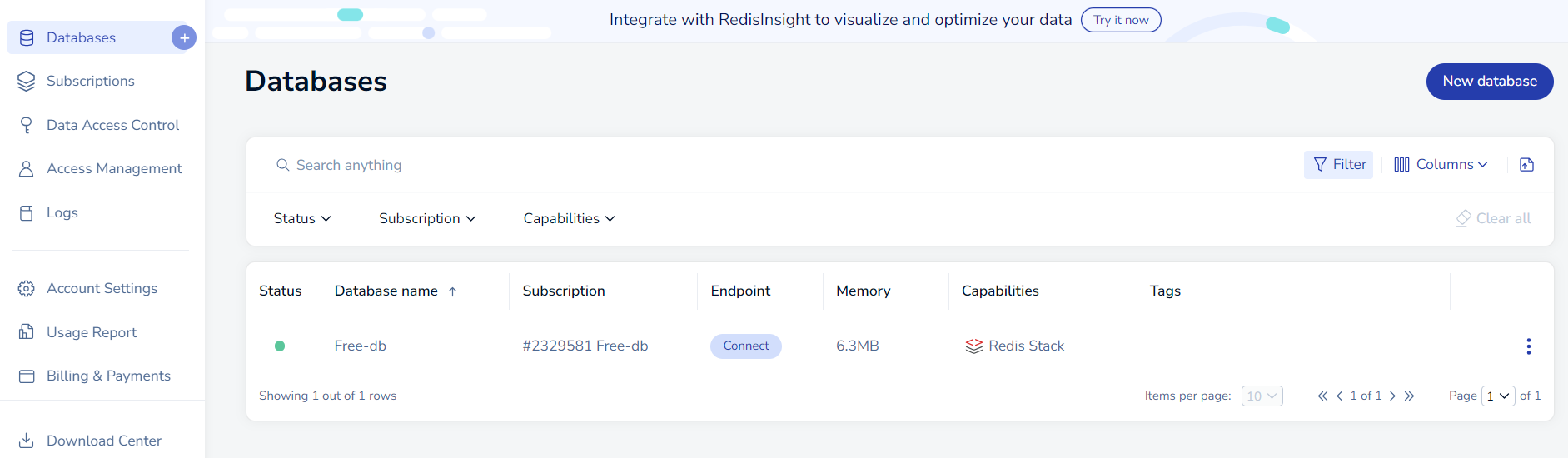 redislabs에 가입해서 redis 데이터베이스를 생성해보자.