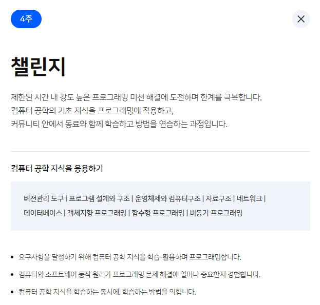 운이 좋게도 2차 문제 해결력 테스트까지 통과하여 이번 4주 과정의 챌린지에 참가하게 되었습니다.