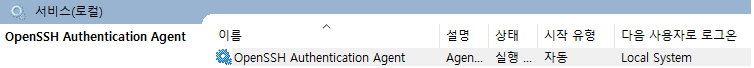 다양한 서비스 중 OpenSSH Authentication Agent를 찾는다.