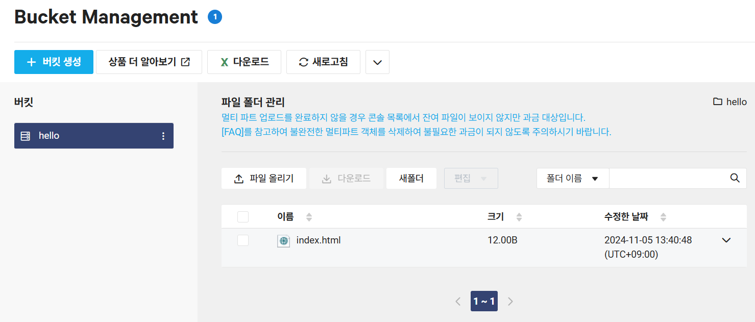 Object Storage란 NCloud에서 사용자가 원하는 데이터를 저장하고 조회할 수 있는 저장 공간을 제공하는 서비스이다.