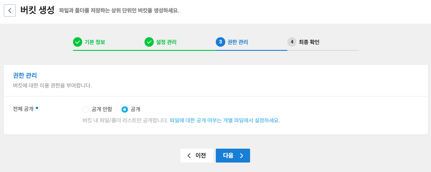 버킷 이름을 작성한다.