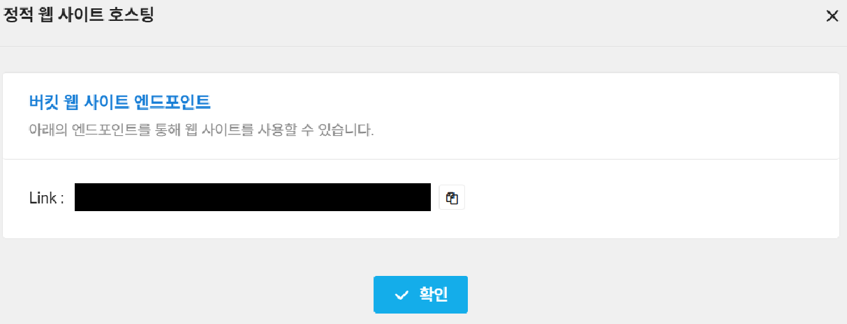 정적 웹 사이트 호스팅을 완료하면 엔드포인트를 알 수 있고 이 엔드포인트에 접속하면 위에서 설정한 인덱스 파일을 볼 수 있다.