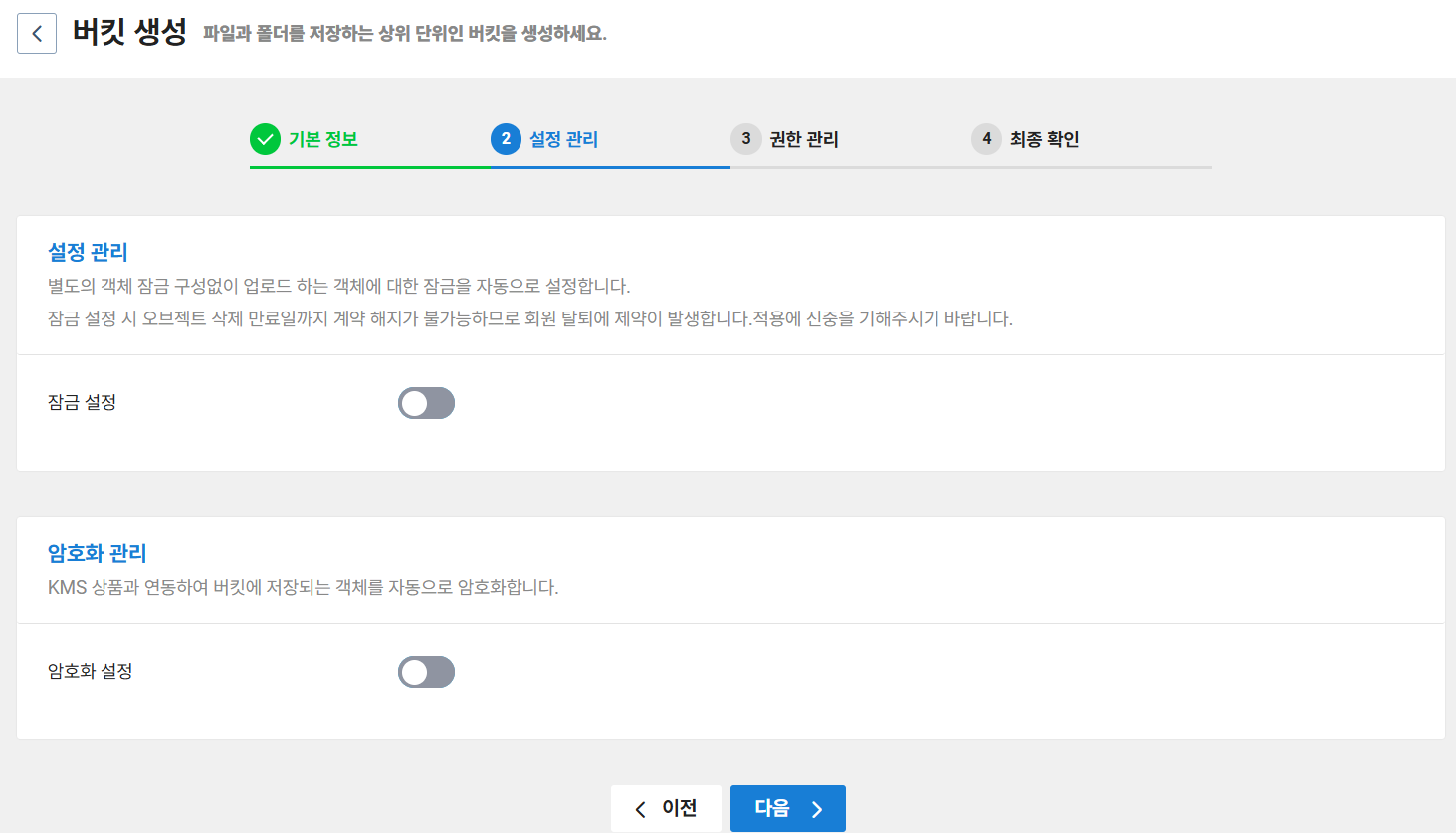 마지막으로 설정 정보를 확인하고 버킷을 생성한다.