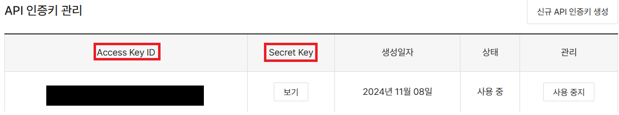 여기서 Access Key ID와 Secret Key를 확인할 수 있다.