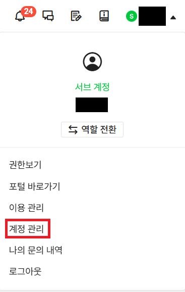 계정 관리에 들어간다.