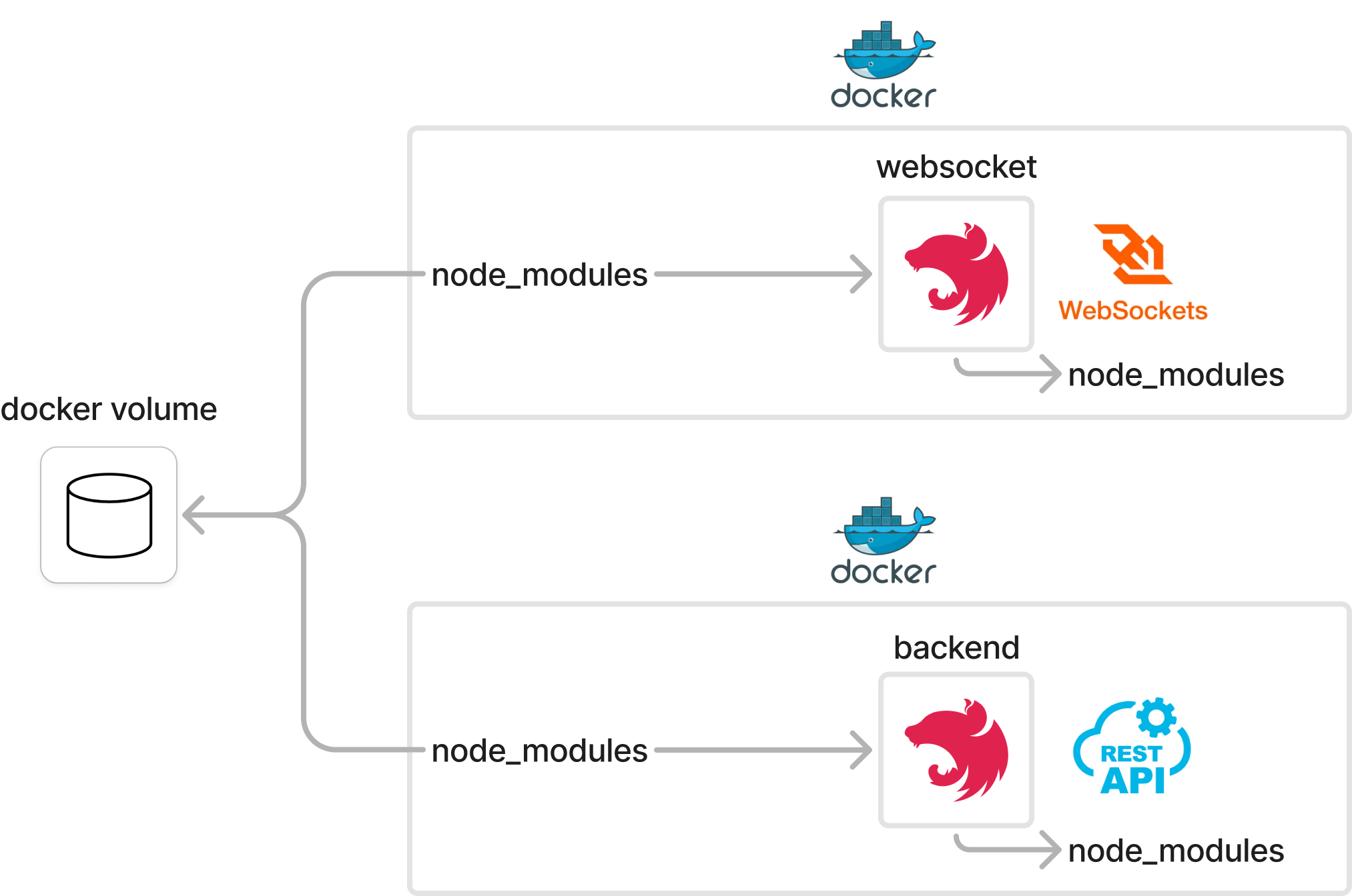중복 패키지를 방지하기 위해 docker volume을 사용하여 backend, websocket 컨테이너에 연결했습니다.