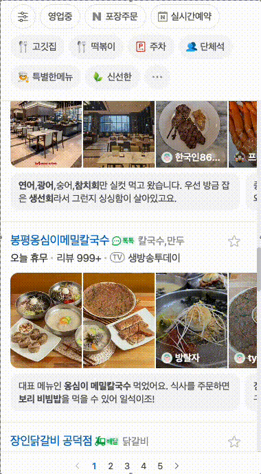 스크롤을 내릴 때마다 새로운 식당이 로딩되고 모두 로딩되면 페이지를 이동하여 새로운 식당 정보를 얻을 수 있습니다.