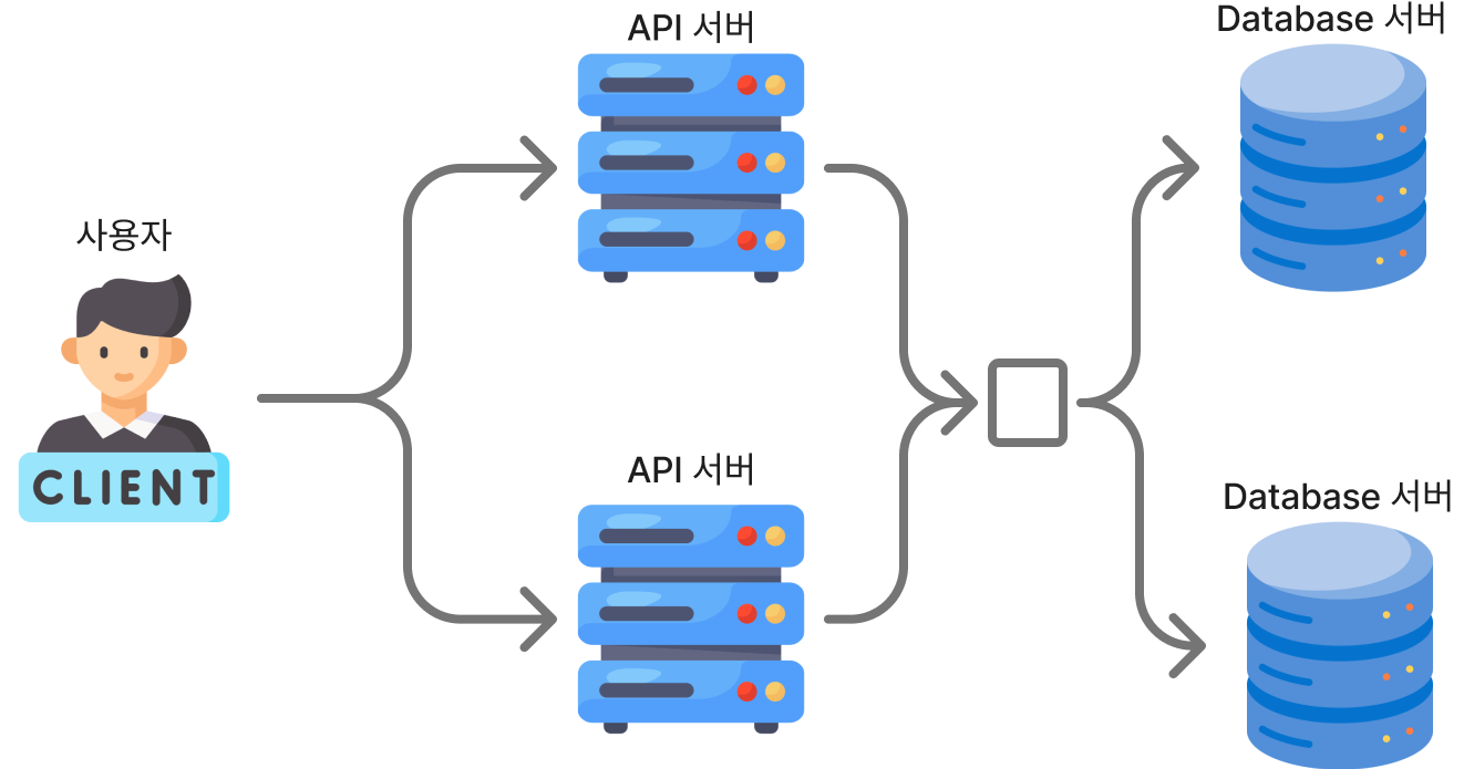 당연히 API 서버의 장애가 발생하면 전체 시스템 장애로 이어지고 Database 서버의 장애가 발생하면 역시 전체 시스템 장애로 이어지게 됩니다.